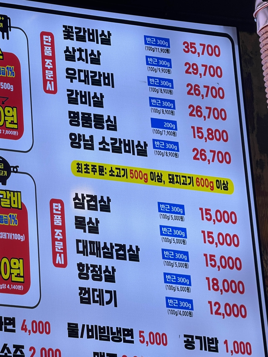 고기 가격도 좀 봐주시겠어요.