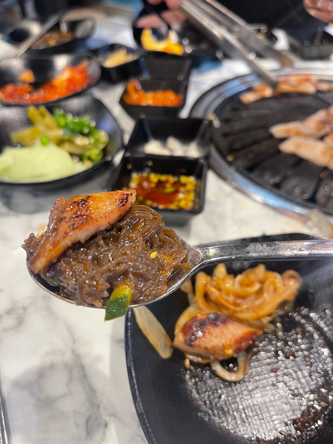 매콤 달콤한 냉면에 고기 올려서
